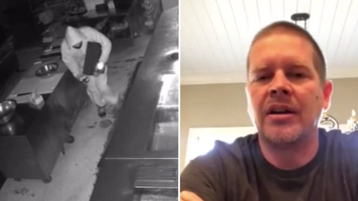 At 4 a.m. that morning, someone had broken into the restaurant and stolen the cash register. Unbeknownst to the thief, however, the cash register was empty. Surveillance footage shows a hooded man walking through the restaurant as alarms blare.